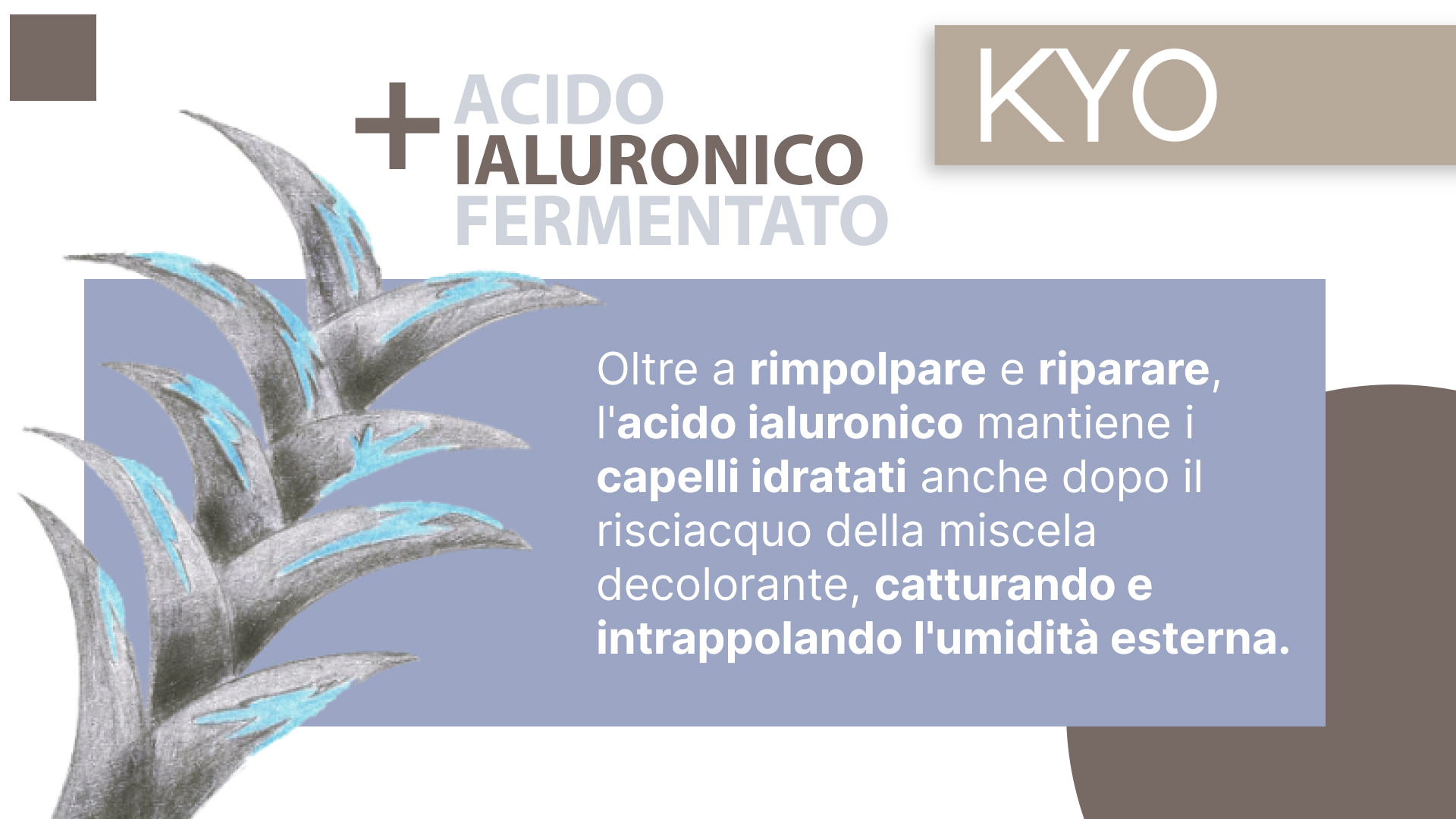 Oltre a rimpolpare e riparare, l’acido ialuronico mantiene i capelli idratati anche dopo il risciacquo della miscela decolorante, catturando e intrappolando l’umidità esterna.