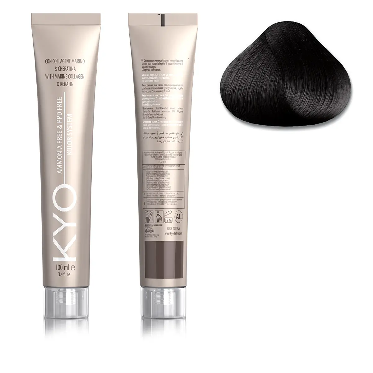KYO KOLOR SYSTEM è l’innovativo sistema di colorazione permanente senza ammoniaca con Cheratina e Collagene Marino che assicura la totale copertura dei capelli bianchi rendendoli straordinariamente brillanti, morbidi, idratati e protetti.