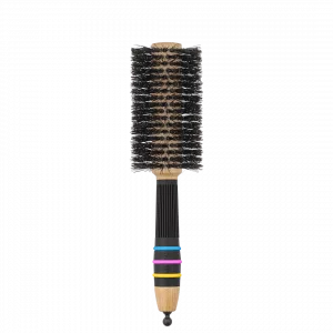Setolatura fitta in Cinghiale 100%. Manico esclusivo in legno, rivestito in gomma antiscivolo con rigatura longitudinale per garantire una presa ottimale. Puntale estraibile per facilitare la separazione delle ciocche. Anelli in gomma colorati per riconoscere la tua spazzola.